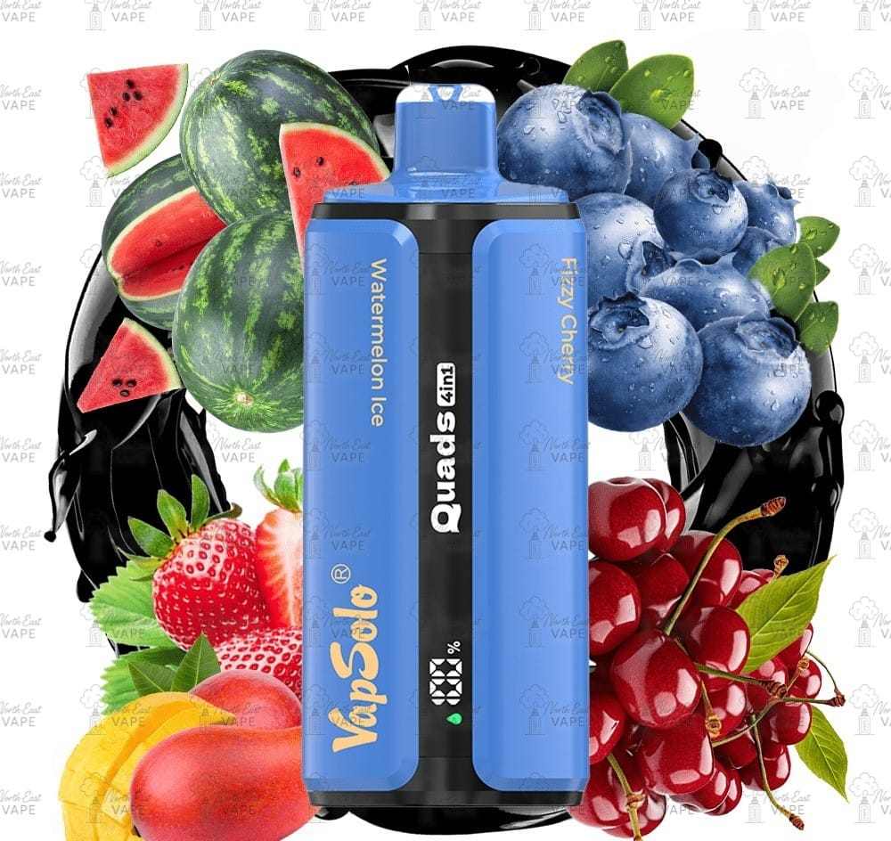 Fedezd fel a VAPSOLO QUADS 80K eldobható vape új generációját, amely a prémium minőséget és a kényelem határait feszegeti! A készülék különlegessége, hogy 4 íz található benne egyetlen eszközben, így kedved szerint válthatsz köztük – például a frissítő Watermelon Ice, a gyümölcsösen édes Strawberry Mango, a karakteres Blueberry Ice vagy a fanyar Fizzy Cherry között.